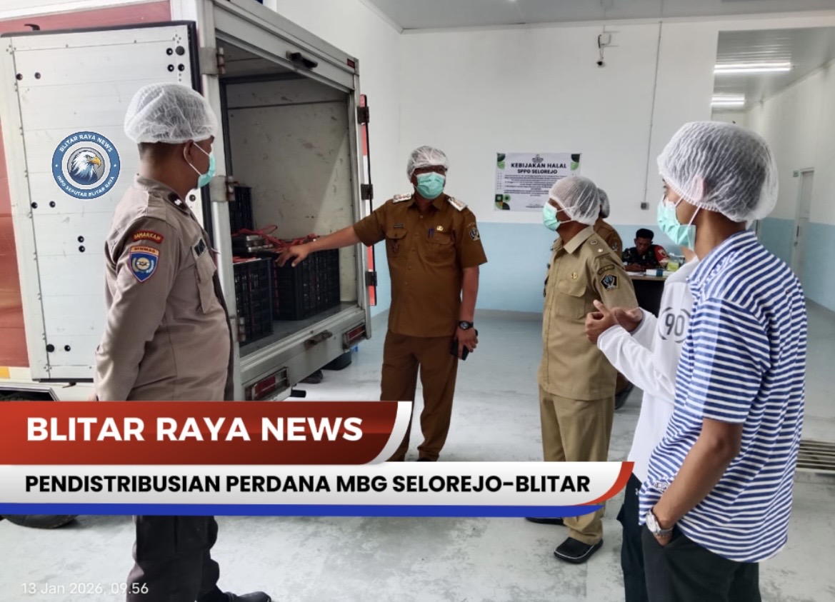 Camat Selorejo Agung Nugroho Sutamat, SE., MM., didampingi Danramil Selorejo serta anggota Polsek Selorejo, meninjau secara langsung pengiriman perdana Makan Bergizi Gratis (MBG) yang dilaksanakan oleh SPPG Selorejo I, Selasa (13/1/2026).