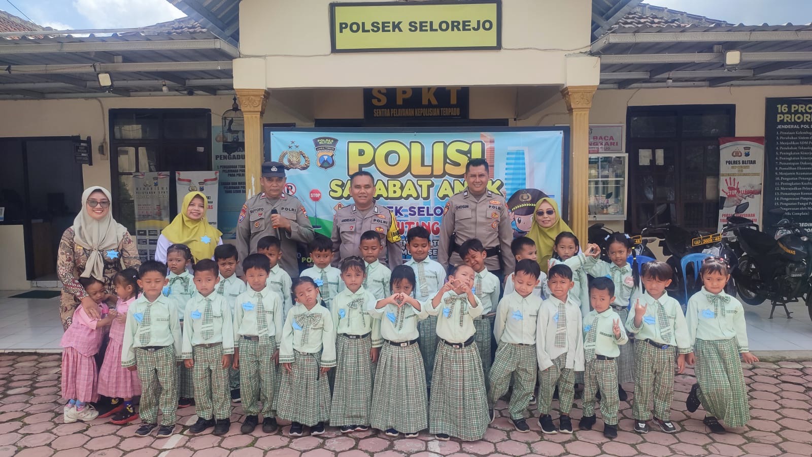 Dalam rangka memperkenalkan tugas dan fungsi kepolisian sejak usia dini, Polsek Selorejo Polres Blitar menerima kunjungan edukatif dari TK Dharma Wanita Desa Ngrendeng, Kecamatan Selorejo, Kabupaten Blitar, Rabu (7/1/2026) pagi.