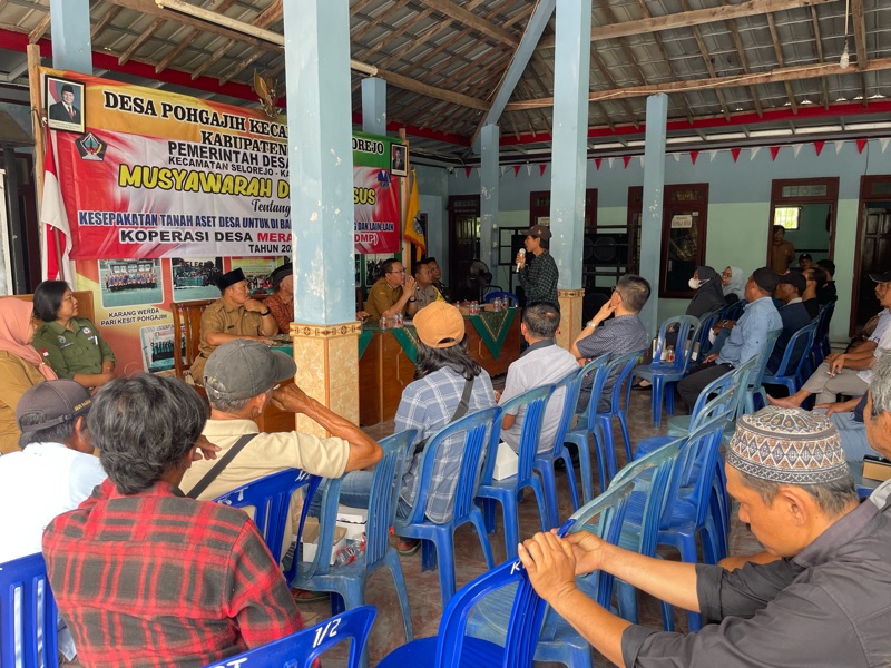 Kepala Desa Pohgajih, Bapak Mukani, S.Sos., menjelaskan bahwa sebelumnya pihak desa telah mengajukan beberapa aset desa sebagai lokasi pendirian koperasi, namun tidak disetujui. Dari hasil kajian, lokasi yang dinilai masuk kriteria strategis hanya tersisa dua alternatif, yakni lapangan desa dan area sekolah, yang kemudian memicu pro dan kontra di tengah masyarakat.