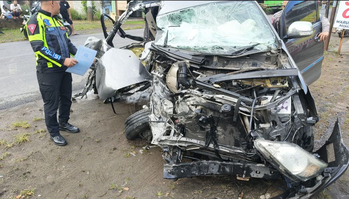 Bagian depan mobil Innova hancur total. Polisi yang datang ke lokasi menduga kuat kecelakaan dipicu oleh pengemudi Innova yang mengantuk hingga kehilangan kendali saat melintas di jalur tersebut.