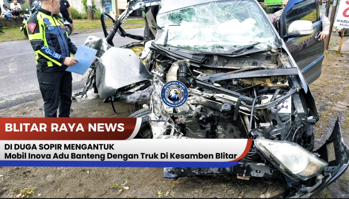 BLITAR RAYA NEWS, BLITAR– Kecelakaan lalu lintas hebat terjadi di Desa Siraman, Kecamatan Kesamben, Kabupaten Blitar, Jawa Timur, Sabtu (31/1/2026) pagi. Sebuah mobil Toyota Innova adu banteng dengan truk pengangkut tepung, mengakibatkan mobil pribadi tersebut remuk parah.