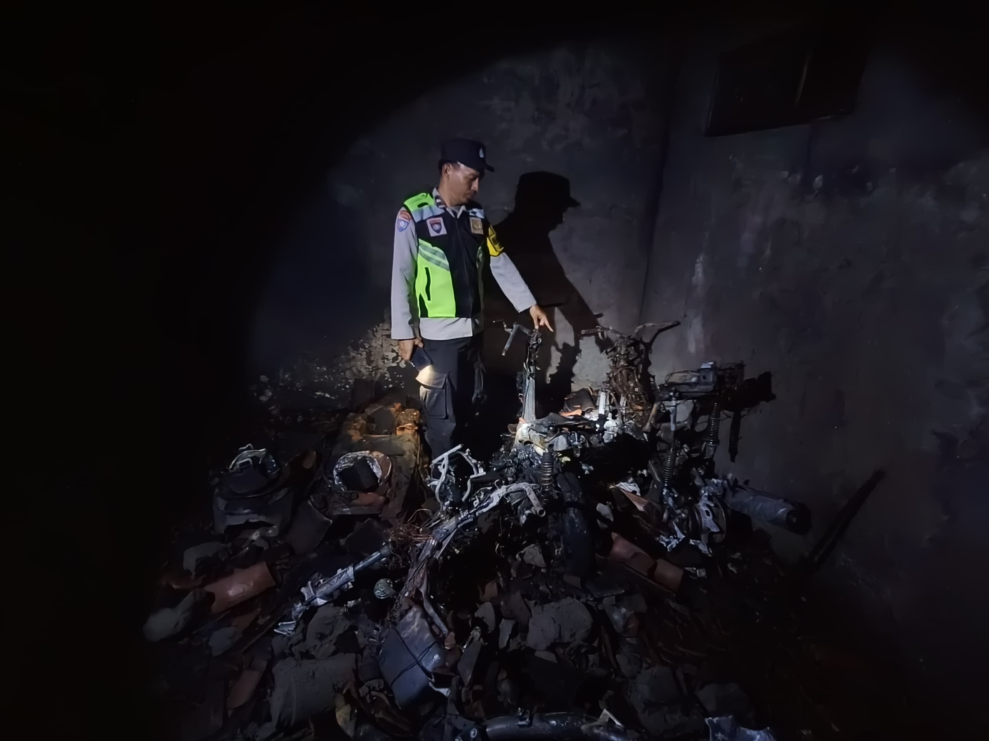 Petugas Polsek Selorejo yang menerima laporan langsung mendatangi lokasi kejadian untuk melakukan pengamanan, membantu pemadaman sisa bara api, serta memastikan aliran listrik dalam kondisi aman.