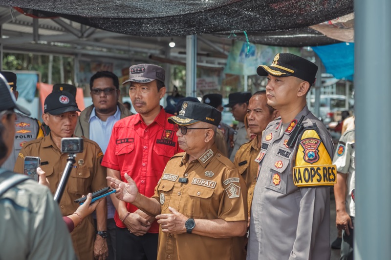 Selain melakukan pengecekan terhadap kesiapan personel, rombongan Forkopimda juga meninjau langsung kondisi pasar guna memastikan ketersediaan bahan pokok tetap aman serta harga tetap stabil menjelang perayaan Idul Fitri.