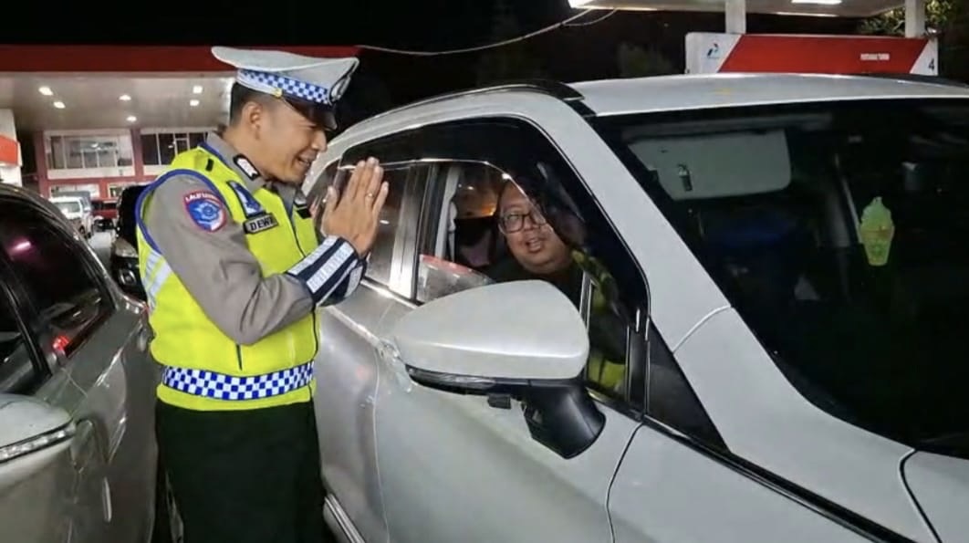 Petugas kepolisian yang berjaga, salah satunya yaitu Bripka Dewa Made dari Pos Pam Selorejo Polres Blitar, terus melakukan pengaturan lalu lintas serta memberikan pelayanan kepada para pemudik guna memastikan kelancaran arus balik.