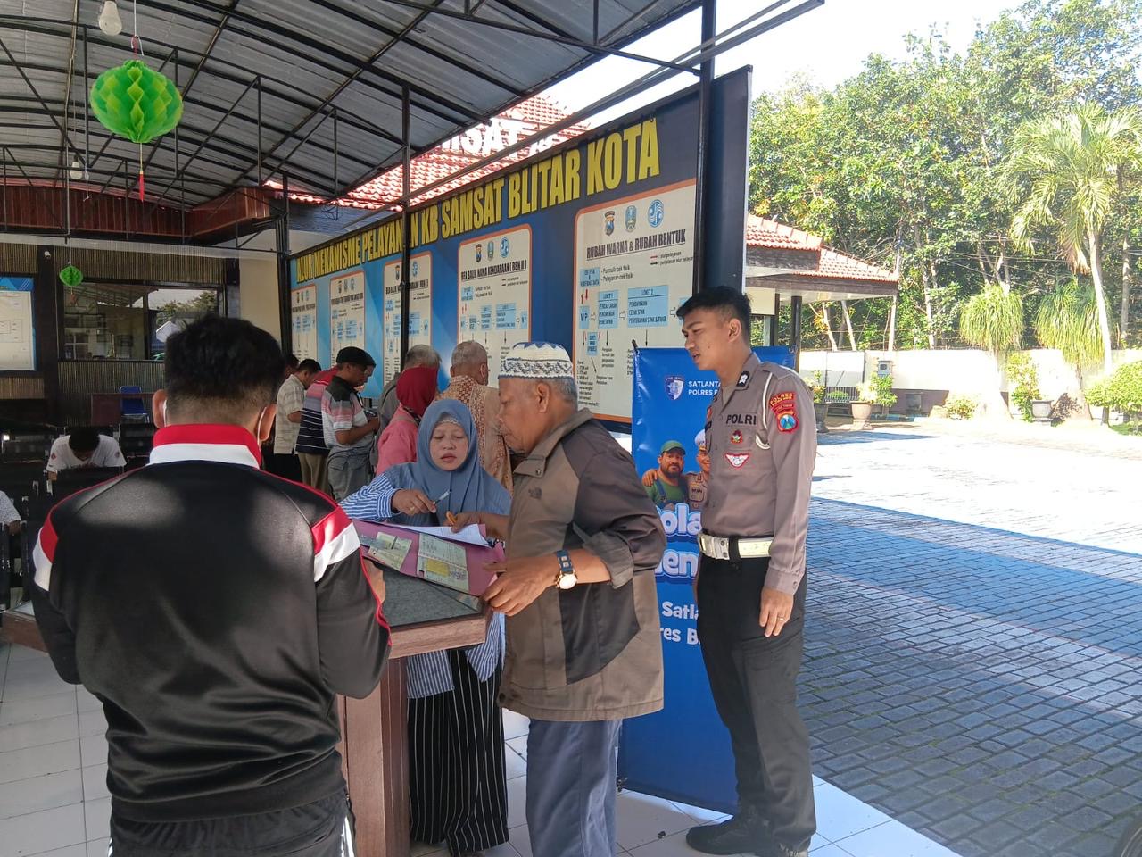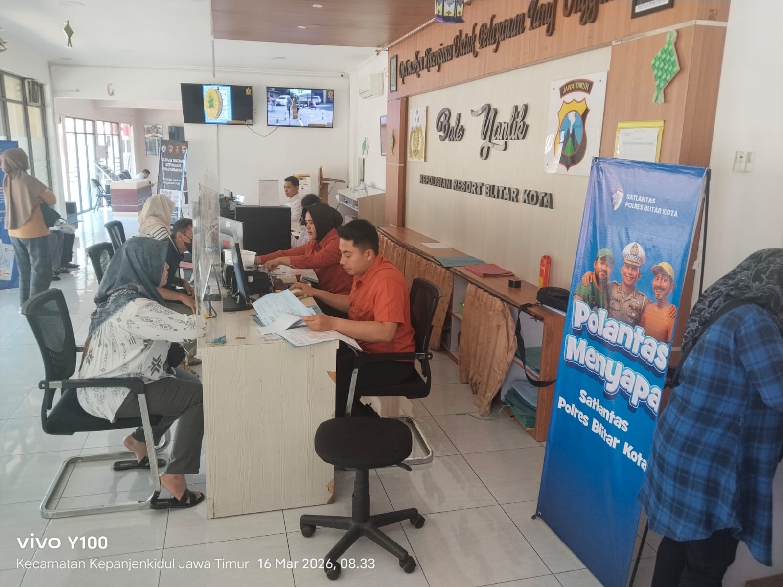 Pada Senin (16/3/2026), bertepatan dengan bulan suci Ramadan 1447 Hijriah, personel Samsat Polres Blitar Kota melaksanakan pelayanan registrasi dan identifikasi kendaraan bermotor di Kantor Samsat Blitar Kota dengan menghadirkan suasana pelayanan bernuansa islami.