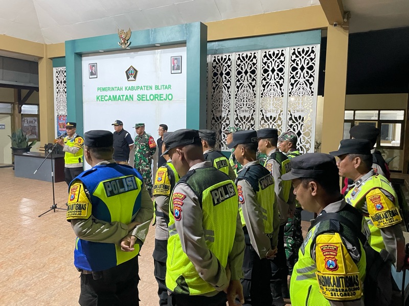 Dalam rangka memastikan situasi keamanan dan ketertiban masyarakat (kamtibmas) tetap kondusif menjelang malam takbir Hari Raya Idul Fitri 1447 H/2026, jajaran Polsek Selorejo menggelar apel gabungan pengamanan di wilayah Kecamatan Selorejo, Jumat (20/3/2026) malam.