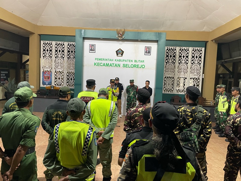 Kegiatan yang dimulai pukul 19.00 WIB tersebut dipimpin langsung oleh Camat Selorejo bersama unsur Muspika, serta diikuti oleh Kapolsek Selorejo AKP Hery Poerwanto S.H., anggota Polsek, Koramil, Satpol PP, Banser, Linmas, tenaga kesehatan, hingga Orari Kecamatan Selorejo.