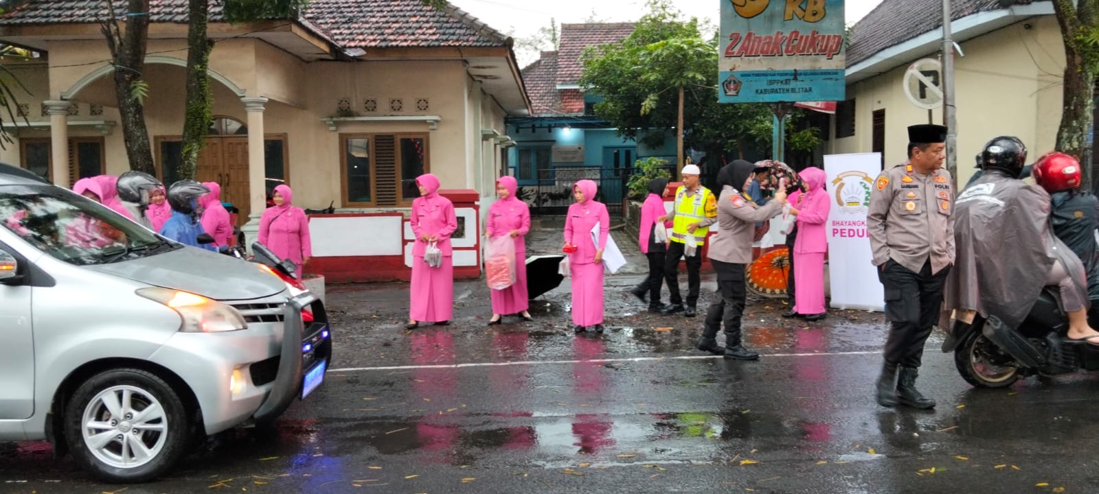 Dalam rangka berbagi berkah di bulan suci Ramadan, jajaran Polsek Talun bersama Bhayangkari menggelar kegiatan pembagian takjil kepada para pengguna jalan di Jalan Raya Talun, Kecamatan Talun, Kabupaten Blitar, Selasa (10/3/2026).