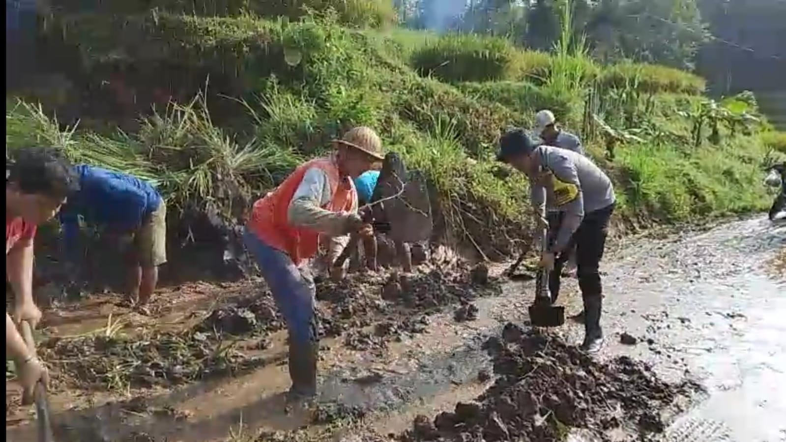 Kegiatan gotong royong tersebut dipimpin langsung oleh Bhabinkamtibmas Desa Bumirejo yang turut berbaur bersama masyarakat. Sasaran kerja bakti meliputi pembersihan aliran sungai serta akses jalan menuju area persawahan yang selama ini menjadi jalur utama aktivitas warga.