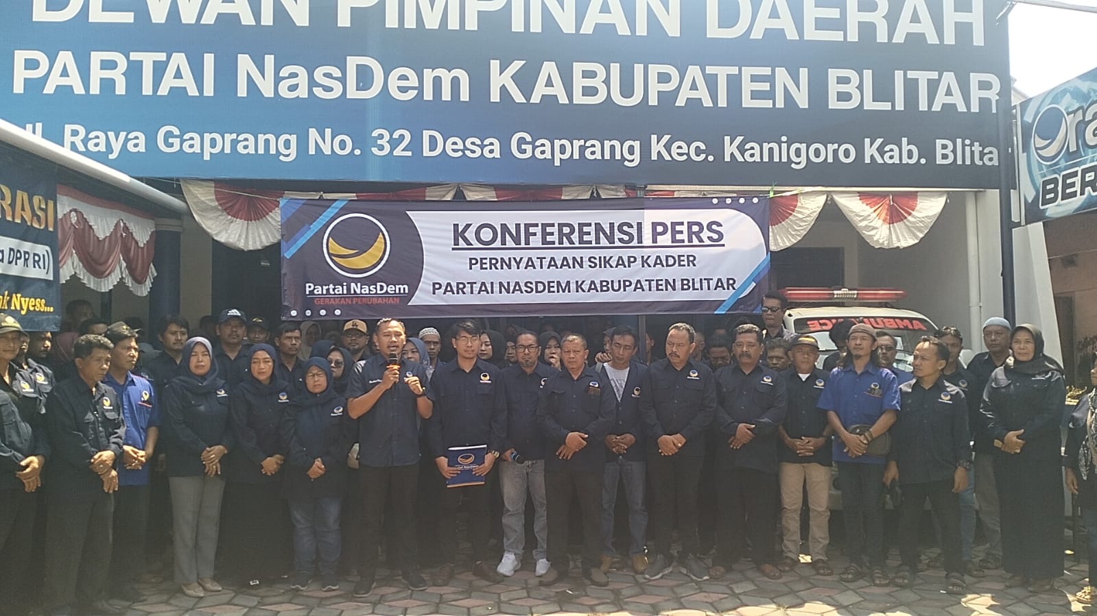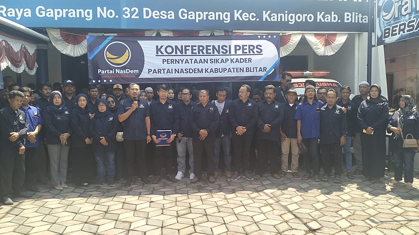 Pernyataan tersebut disampaikan dalam konferensi pers yang digelar di Kantor DPD NasDem Kabupaten Blitar, Desa Gaprang, Kecamatan Kanigoro, Rabu (15/04/2026) pagi.